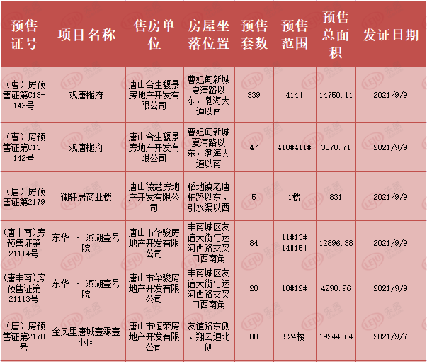 截至9月13日9时,乐居监控上周(2021年9月6日-2021年9月12日)唐山房地产市场获批预售量达55083.8平方米,环比跌幅17.89%。预售套数达583套,环比跌幅9.04%。