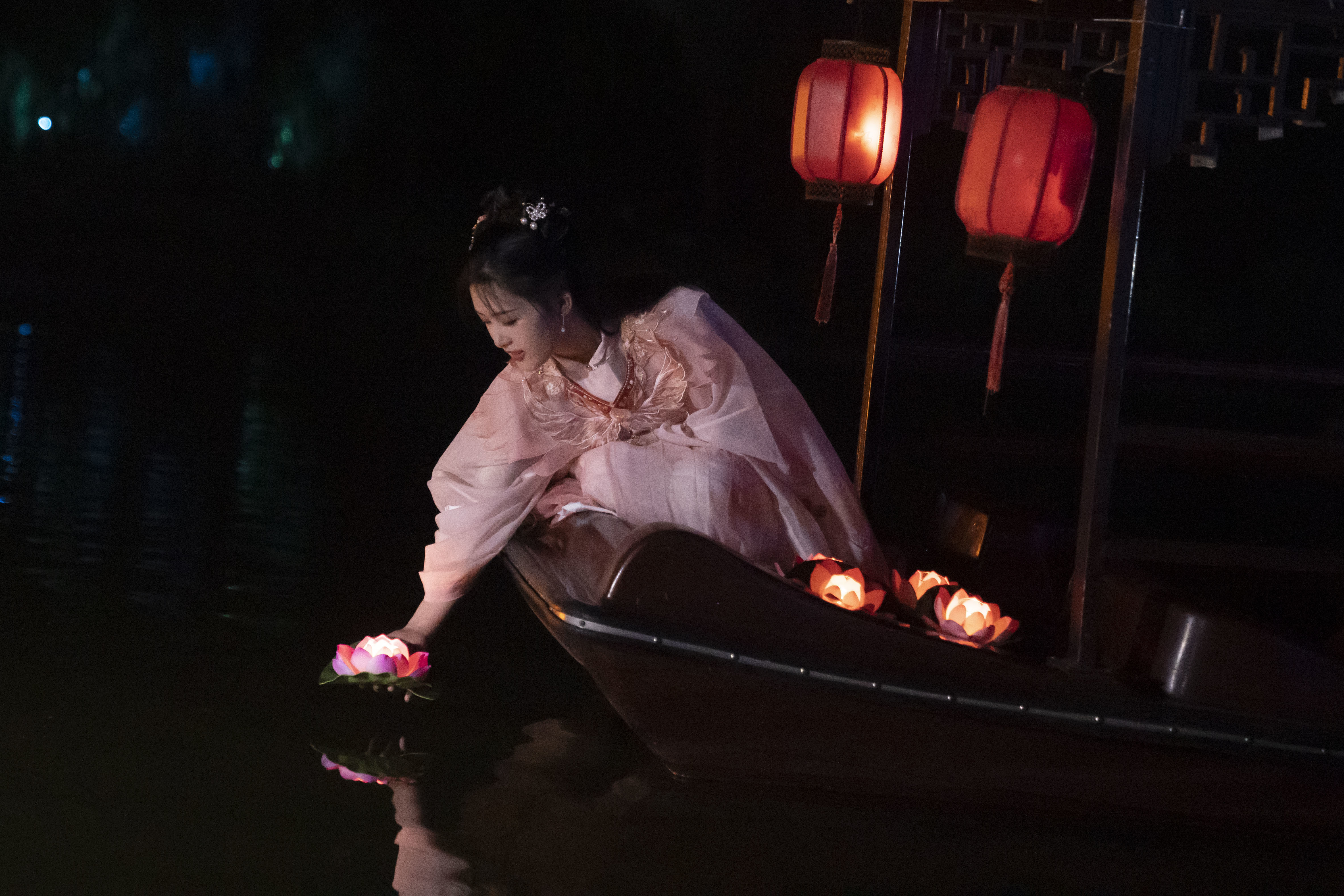 猜灯谜、赏河灯也是过节的重要环节。当夜幕降临,《牛郎织女》项目区域将别有一番风景。千盏灯笼和河灯将相继亮起,不妨约上家人在这里来一场以知识储备决定家庭地位的比拼,还能欣赏到盏盏河灯共月明的中秋美景。