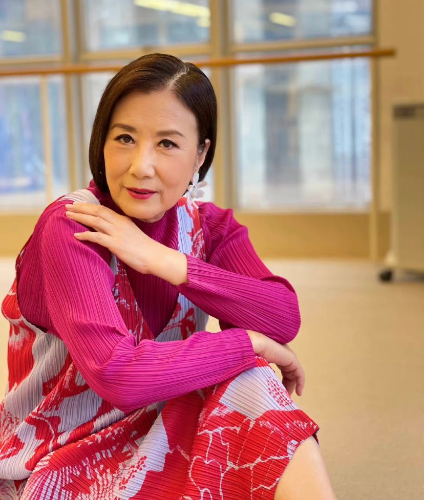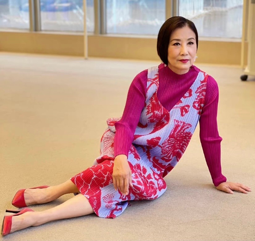 当天汪明荃穿一件玫红色的长袖,外搭大红花色连衣裙,打扮优雅知性。干练的短发搭配白色花型耳坠,脚下还踩着一双红色高跟鞋,完全看不出来她已经74岁了。