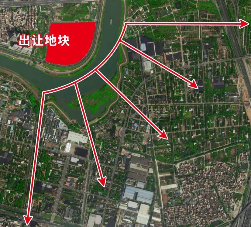 从地图可见,地块被东平水系环抱,与陈村花卉世界隔河对望。