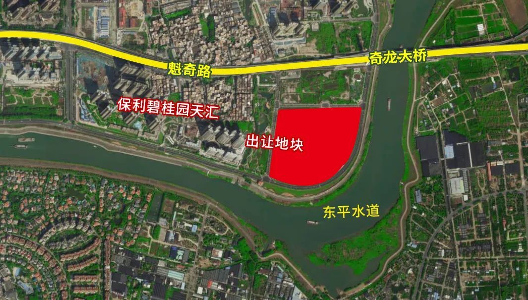 今日出让地块又称“三龙湾1号地”属于规划中的奇槎湾畔片区,具体位于东平路西北侧、规划十五路南侧(即保利碧桂园天汇以东,魁奇路以南)。