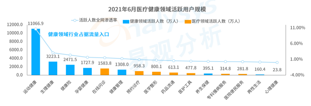 ( 2021年6月医疗健康领域活跃用户规模数据 )