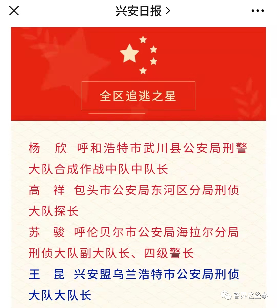 其中,来自兴安盟的乌兰浩特市公安局刑侦大队大队长王昆,获得全区追逃之星荣誉称号并获表彰。