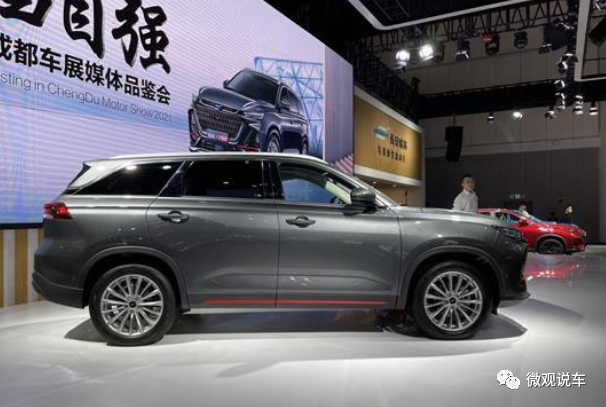 从车身的侧面看,大量平直的线条运用,身形更为舒展,看起来比较大气。车顶的线条硬朗,B柱C柱熏黑处理,D柱下部分熏黑处理,车顶内是半悬浮的状态,看起来有特色。笔直的高腰线贯穿车身,下方接近底盘之处有红色的装饰条,增强了运动感。4730x1870x1720毫米长宽高,2786毫米轴距,定位紧凑型SUV,和同级别车相比,车身尺寸参数有一定优势。