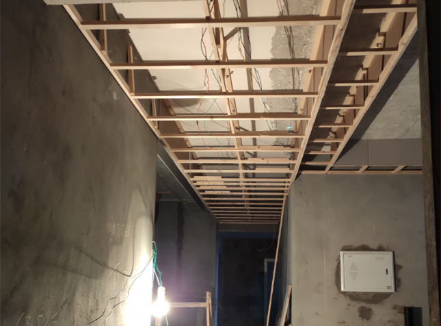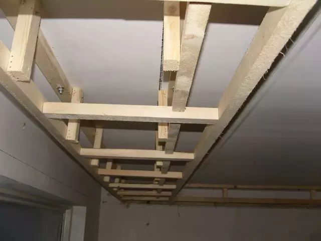 木龙骨加工好后,再根据吊顶造型与受力分布,把龙骨组装在天花上,然后板材就可以用螺丝装在龙骨上了。
