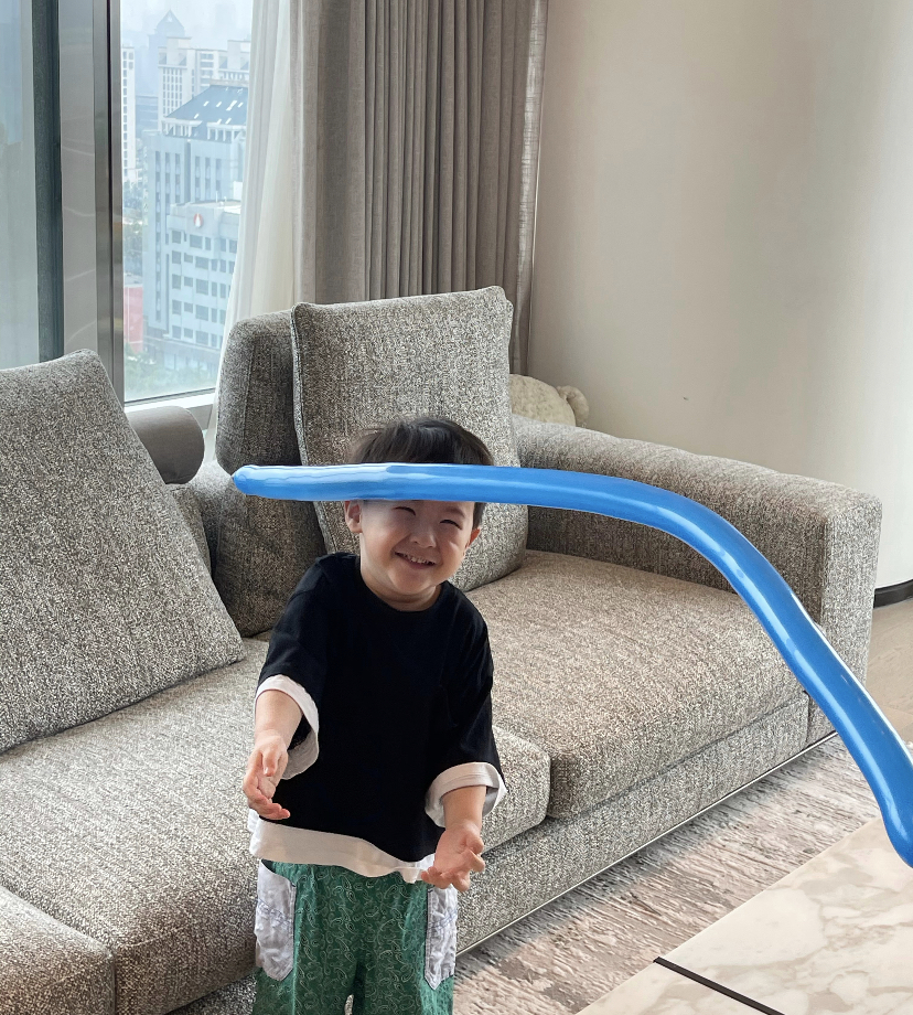 他十分活泼、还爱搞怪,这一点是遗传了爸爸。