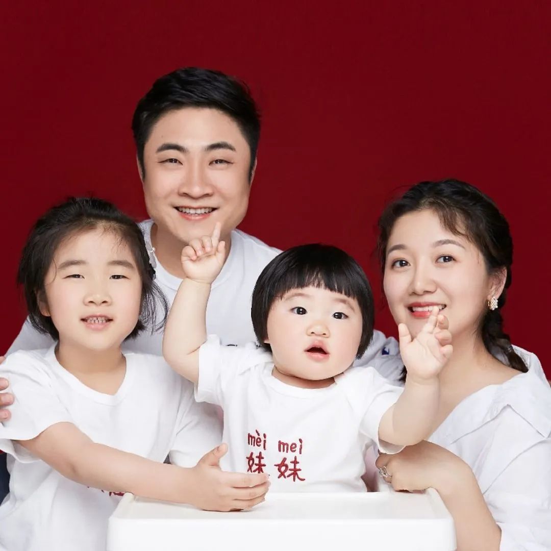 看王祖蓝一家四口的合影,家里三个人都是同款鼻子,遗传还真是神奇。