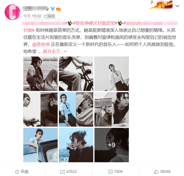实际上,蔡徐坤硬封面汉造型的话题,完全是合作的时尚杂志,还有他的铁杆粉丝给弄上热搜的,后来反馈的效果令人不满意,只好重新编辑修改微博内容,目前已经没有显示硬汉相关的字眼描述。