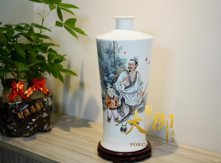 画花鸟者,瘦木熟花,蕉绿桃红,有着宋人的怡情别致;画山水者,幽涧馥花,清船野流,有着老子的知水仁山之意;画人物者,隐匿篱下,笛声天影,有着魏晋的文人气质。在景德镇的一位陶瓷绘画艺术家--徐鹏飞,他画人物,便也用人物包罗万象。