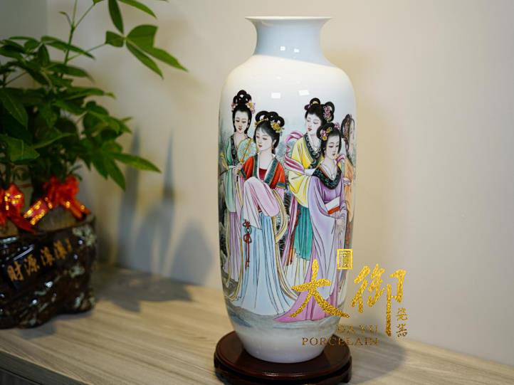 徐鹏飞的仕女瓷画,巧于利用人物视角和陶瓷器型的变化特点,美人绘制细腻柔美,身姿曼妙,我见犹怜,布局精妙,观之清新秀丽,秀拙相蕴,仿若真人入画,使之既有传统典雅的气质之美,也有现代娇媚的容貌之美。
