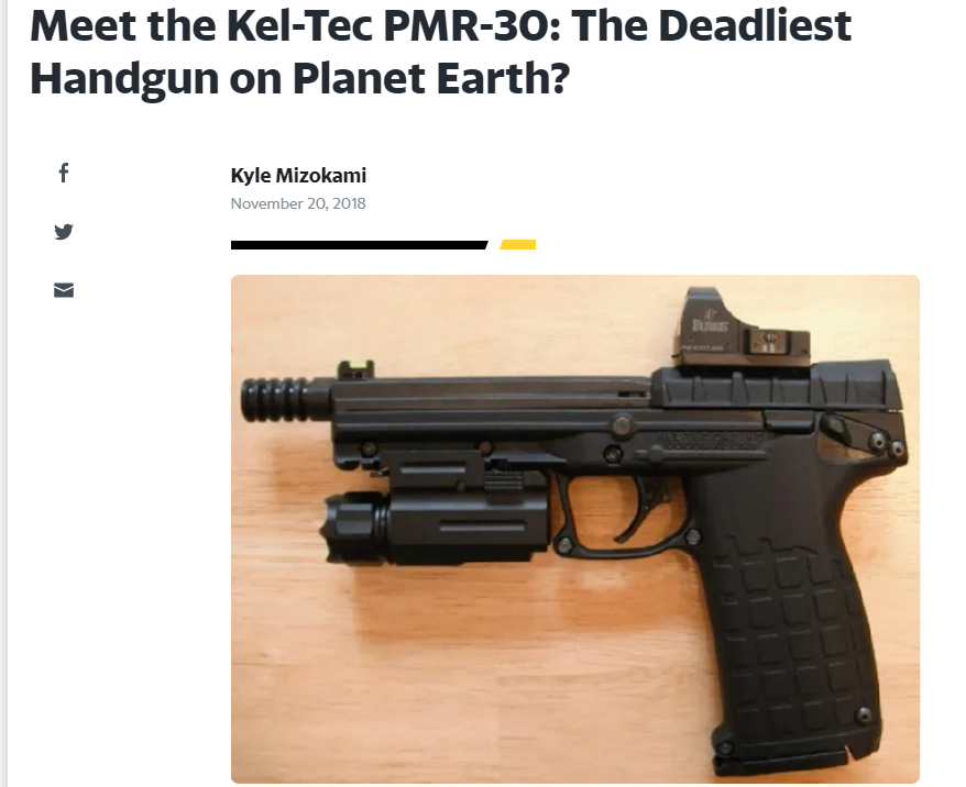 大体上就是,一群人坐在一块讨论枪,讨论讨论自己最近买什么枪了,然后有个人掏出来一把PMR-30,嘴里说:你看我这个手枪,30发子弹;另一边又有个人掏出一把手枪:你看我这个P50,50发子弹,长得也帅。