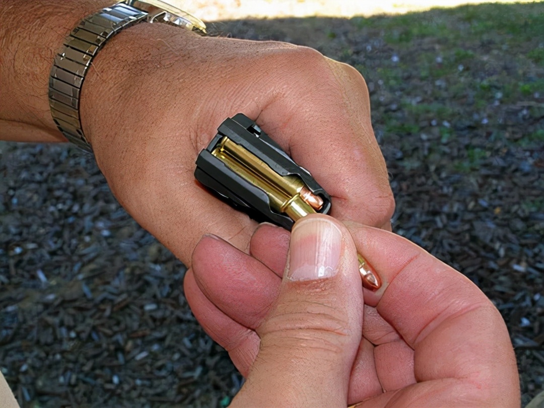 这把枪最大的特点是三十发的容弹量,一点都不像手枪的容弹量,当年咱们用的那二十响,还是使用了加长弹匣才有的。PMR-30用的双排双进的弹匣,这是一个原因,而更主要的原因是其使用的.22WMR子弹非常细,.22WMR其实就是加长了的.22LR,算是增强版,这是能塞这么多的主要原因。要是是用.45ACP,根本塞不了这么多。