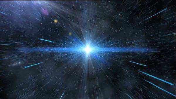 这种聚合就产生了一个奇异点,就像黑洞的中心一样,这是一个具有无限质量和难以想象的巨大引力的点。理论物理学家由此推导出,奇异点存在一个引力的上限值,一旦超过这个限值,强大的引力就会突变为向外扩张的力,导致奇异点以超光速的速度进行扩张,直到它冷却到足以产生各种基本粒子如光子等。