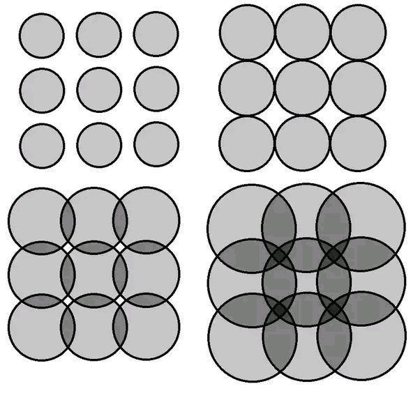 右上的图:几个宇宙在扩张过程中开始相互影响