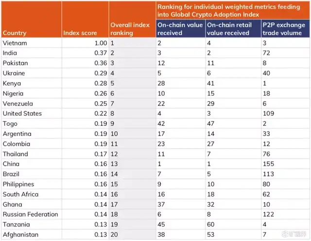 ▲加密货币全球采用情况的排名 来源:Chainalysis