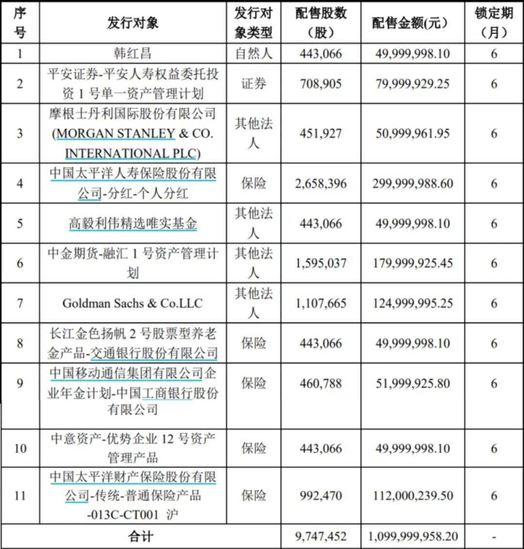 图2 密尔克卫定增发行对象明细