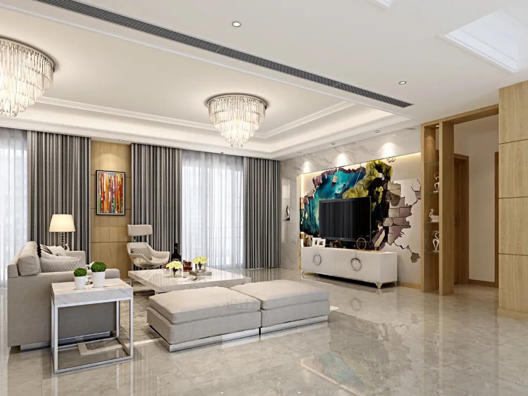 不像复式或别墅会有楼梯间,大平层房子只有一层,因此每个空间的面积都是非常的大,在大空间的情况下,在设计布置的时候,最重要的就是要避免“大而空”的空间感。