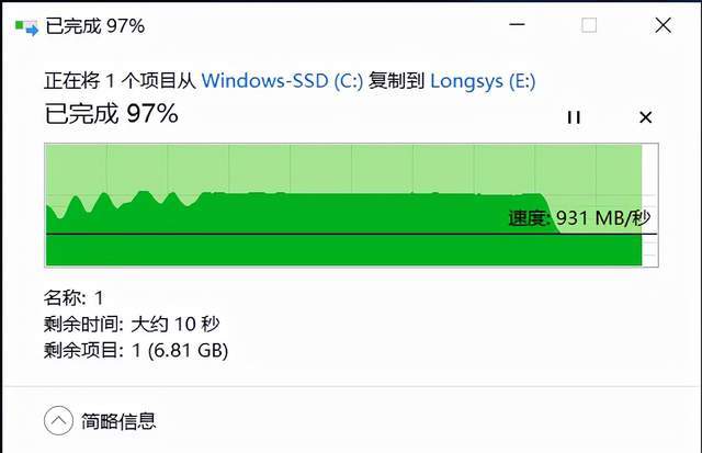 我们还进行了大文件拷贝实测,我们分别写入写出一个约 250G 超大压缩包,看看它能否坚持不掉速。实测写入 250G 只用了大约两分钟,大部分时间都维持在 2GB/s 左右,最后几百 MB 降到了 950MB/s 上下,这个表现还是不错的。