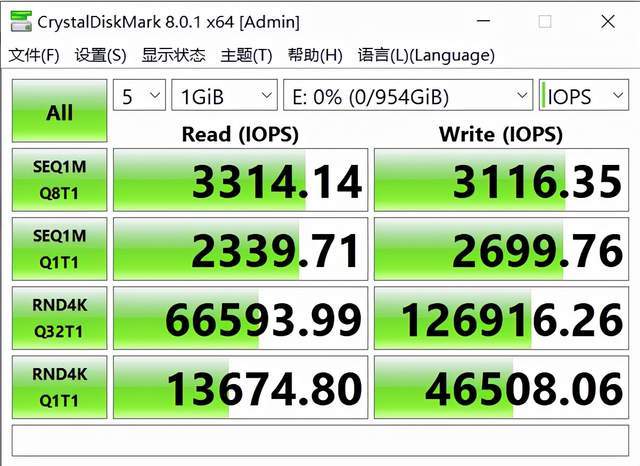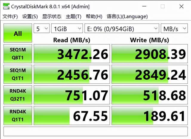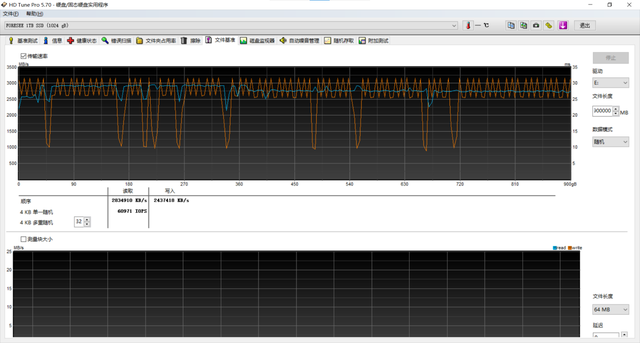 10GB 下顺序读写反而有提升,4K 分数则有一定降低,得分 3105 分。这意味着持续读写大文件的能力是非常强的。