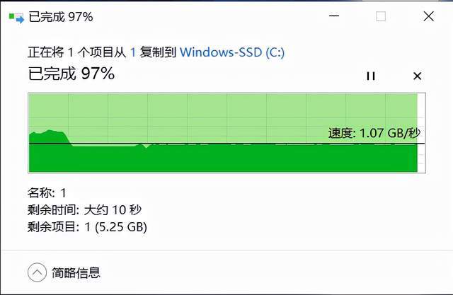 导出 250G 的文件则是全程稳定在 1GB/s 上下,用时约 3 分钟,表现很不错。