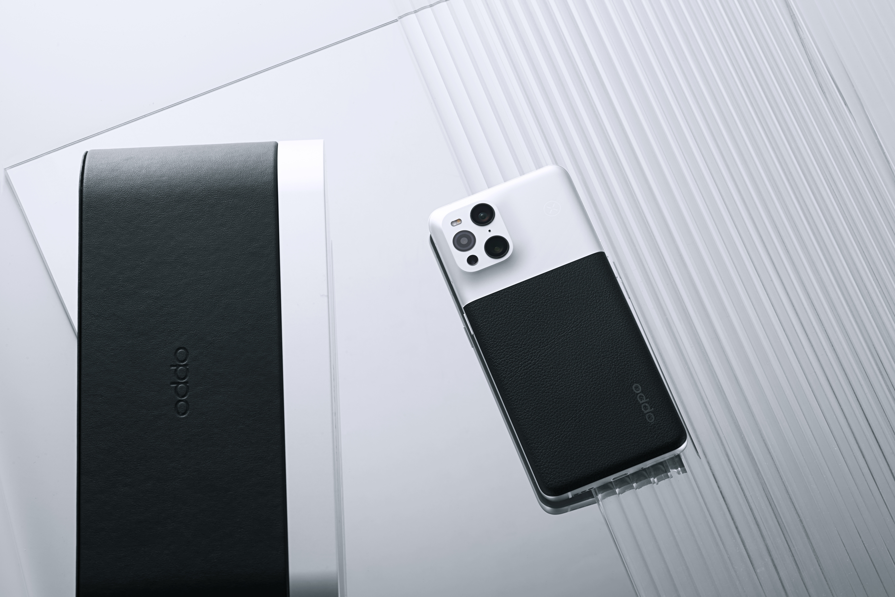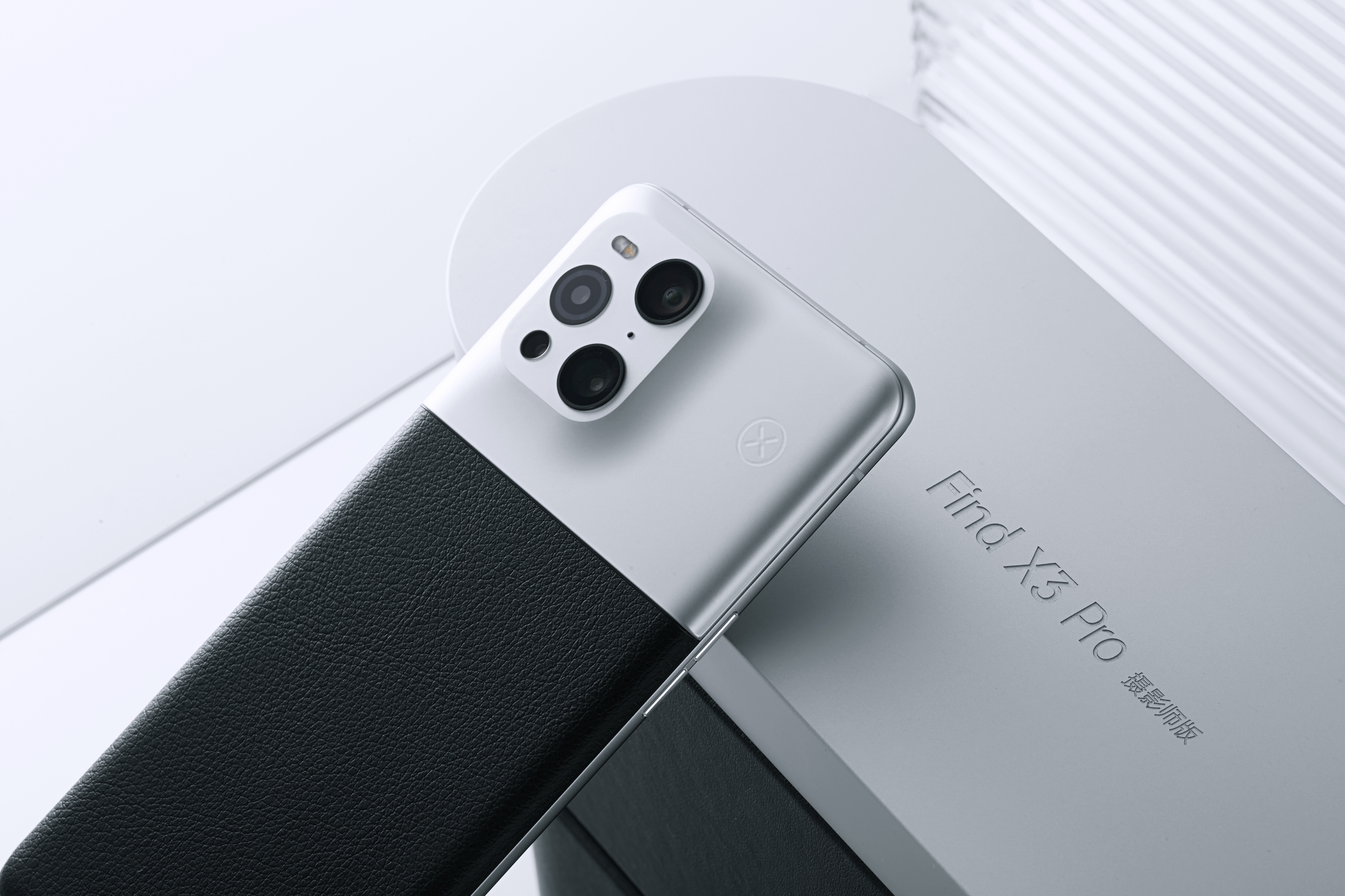拿出OPPO Find X3 Pro摄影师版手机本体后,第一反应是:高级。分段式的机身设计让人眼前一亮,复古相机的造型设计确实很贴合“影像”一词,在镜头模组的上半段,OPPO保留了经典的“环形山”并首次采用银浆喷涂工艺,让玻璃背板呈现出金属的视觉效果;下半部分在玻璃背板上搭配了“黑荔枝纹”皮革,皮革材质带来柔软、舒适的质感。巧妙的是,OPPO还在这两种材质的衔接处用上了一条精细化围骨,让两种材质进行紧密贴合,达到整机一体感更强,握持感更好的效果。