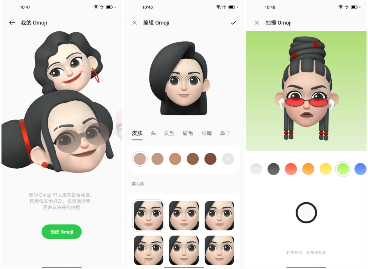 不仅如此,OPPO Find X3 Pro摄影师版所搭载的ColorOS 12还增添了一些有趣且实用性极高的新功能。比如,引入业内先进的Face Capture算法,打造的高精度3D虚拟形象功能OMoji,该功能就可通过算法生成个性化十足的虚拟画像,该画像可以用在 OPPO 账号,息屏 AOD,甚至第三方视频通话应用中(如微信、腾讯会议、Zoom)等,可玩性很高。