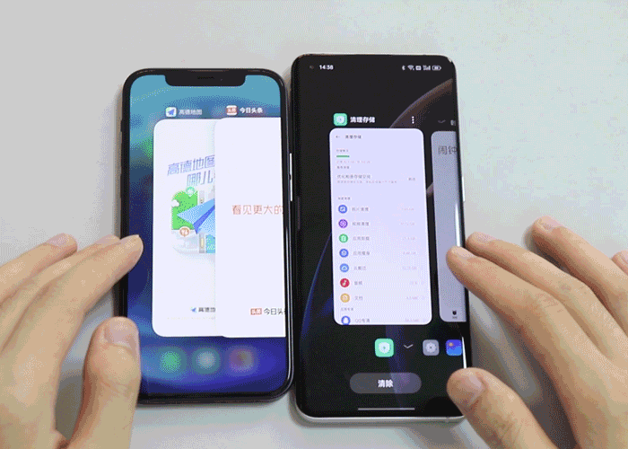 我们还特意将OPPO Find X3 Pro摄影师版拿去和动画效果做得极致的iPhone 12进行对比,发现在动画这一块ColorOS 12与iOS 15已经处于同级的水平,而且在120Hz高刷新率的优势下,OPPO的触控反应,以及滑动后台时的顺畅程度上,都会更胜一筹。
