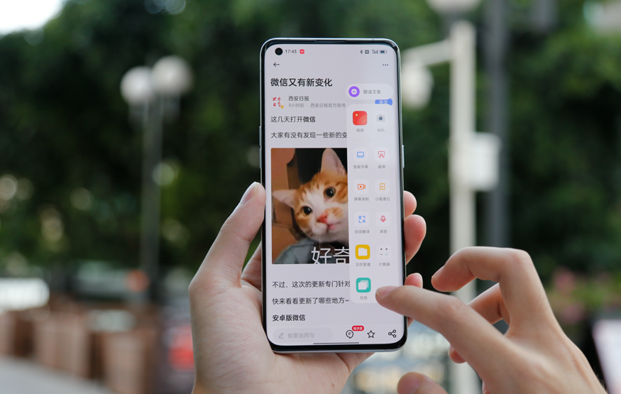 当然,除了流畅度有很大的提升以外,这次ColorOS 12系统在功能体验上也有升级,比如在智能侧边栏上就新增了朗读文章的功能。对于我这种平时比较喜欢看书、看新闻的人来说,简直就是福音,有时候可以偷偷懒,让眼睛休息一下,戴上耳机开启这个朗读文章的功能,让手机给我读一下「书」,也是挺好的。