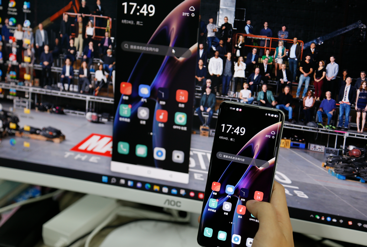 最后,我们来看看这次最让人惊喜的功能,那就是下面这个跨屏互联。它的到来可以说打通了OPPO手机和PC端的联动,开启该功能以后,两个设备靠近就会自动触发,非常方便。在连接以后,手机和PC上可以共享剪贴板、无缝文档编辑、共享通知、共享截屏以及支持45MB/S极速互传。毕竟现在智能手机已经成为了大众日常生活以及工作的必备「工具」,所以增强了手机和PC端的互融,这样的操作就等于提升了用户工作的效率。从实际操作来看,跨屏互联功能的操作并没有看到有明显的延迟。