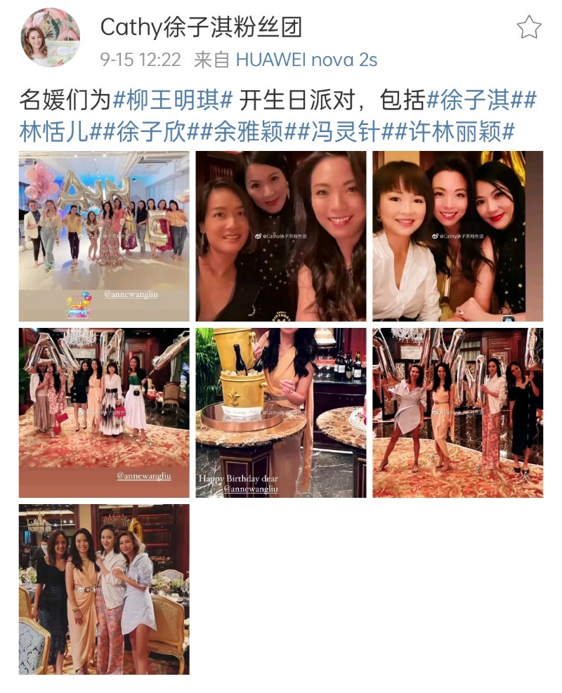 近日,“千亿媳妇”徐子淇晒照再度引起了热议。在她晒出的一组聚会合影,合照中大家可以看到,豪门名媛齐聚一堂,其中就有徐子淇两姐妹以及好友林丽颖和冯玲珍等。据悉,这场聚会是为给好友柳王明琪庆祝生日,场面热闹非凡,室内设计装扮更是奢华。