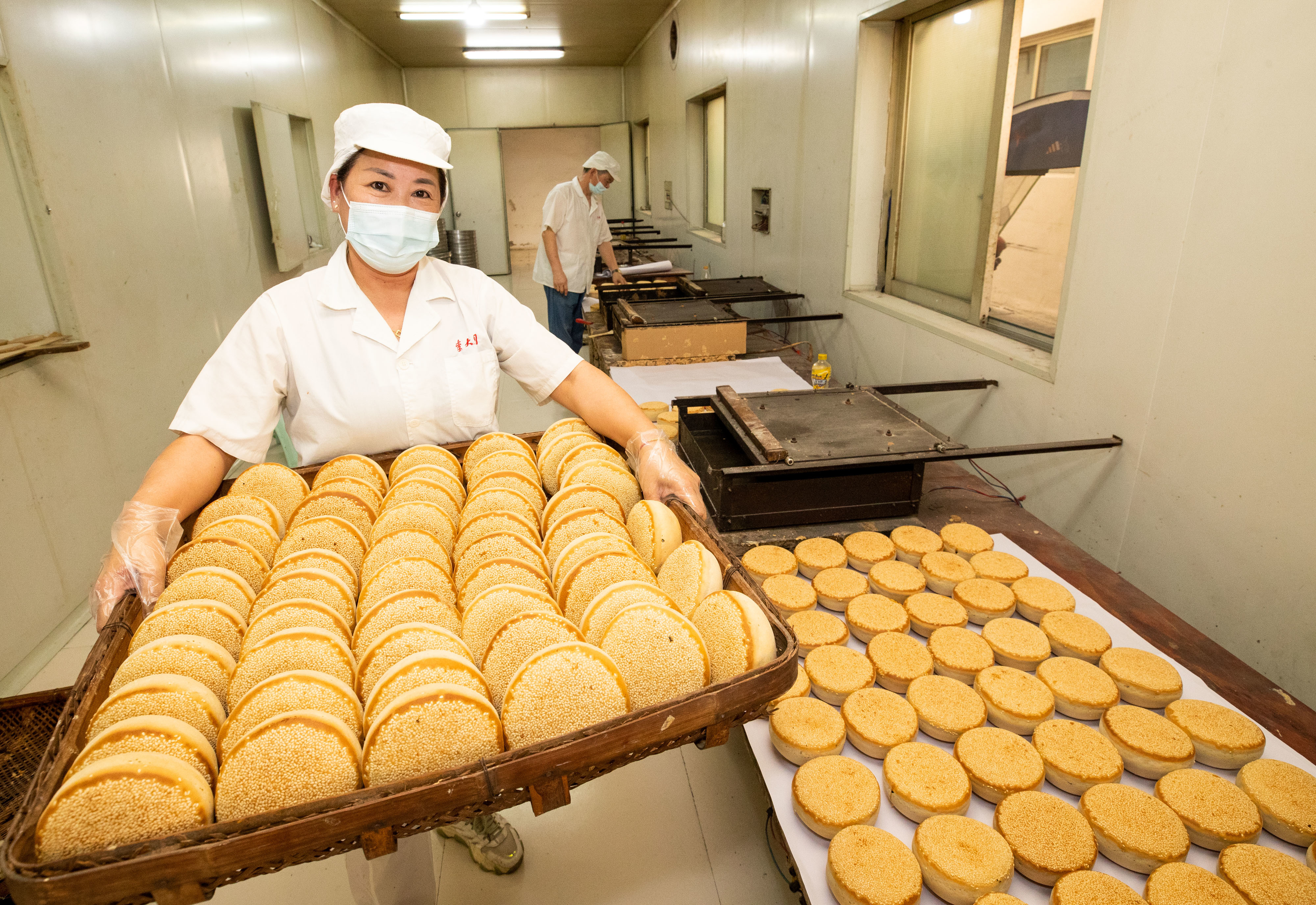 9月16日,在瑞安市一家食品有限公司的“空心月饼”生产车间,工作人员正忙着制作瑞安特产“空心月饼”。随着中秋临近,已有百年历史的“空心月饼”销售迎来高峰。“空心月饼”是一种用独特工艺烤制出来的圆形中空的糕点,为瑞安特产,吃起来又香又脆,还有大小月饼相叠悬挂的式样,谓之“套月”。