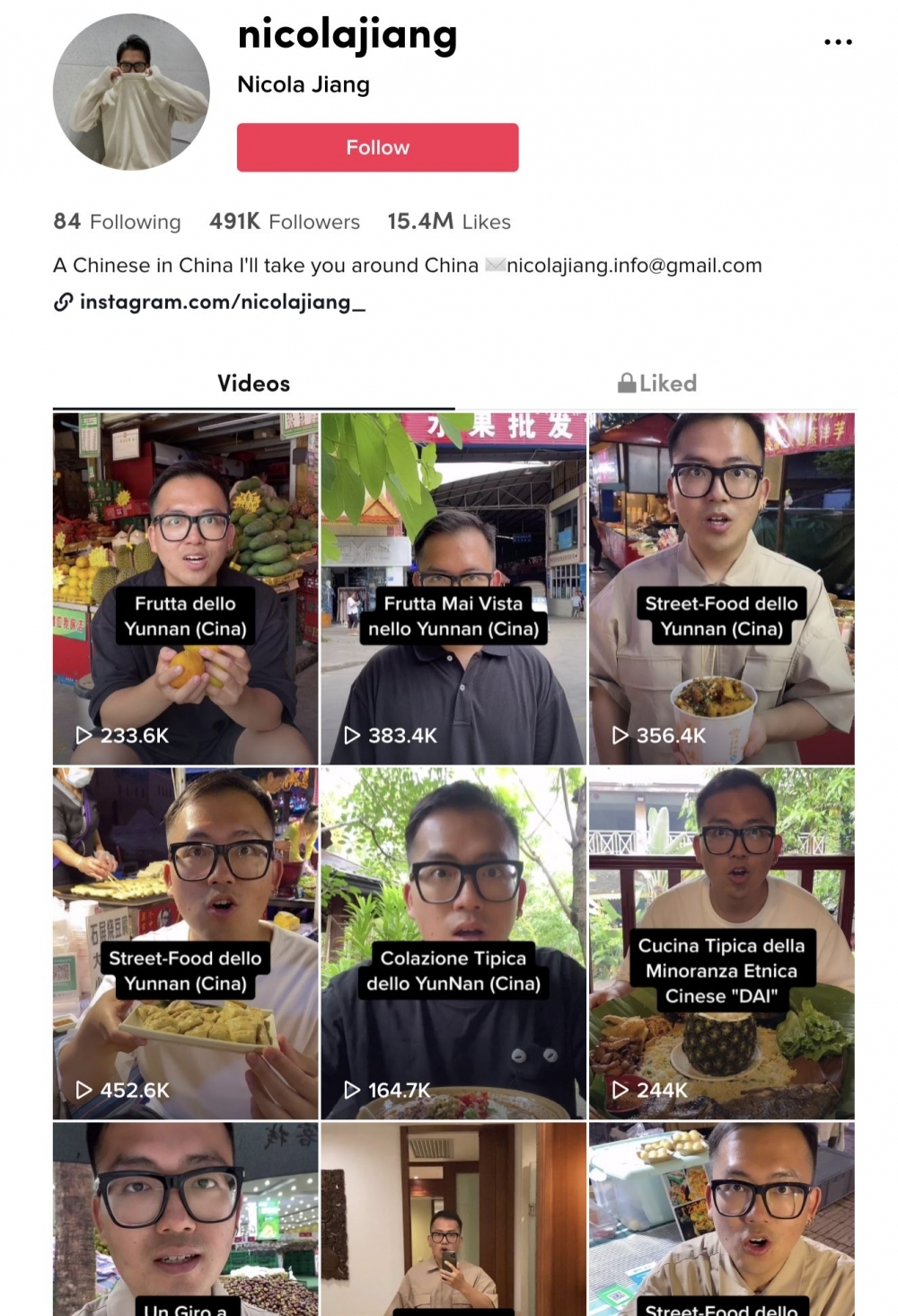 在TikTok上,自称“吃货”Nicola展开一场美味又好玩的“全国巡吃”之旅,以北京为起点,东至嘉兴、宁波、温州和南京,南抵三亚,西到重庆和西双版纳。在此过程中,他吸粉近50万,并成为意大利媒体争相报道的对象。