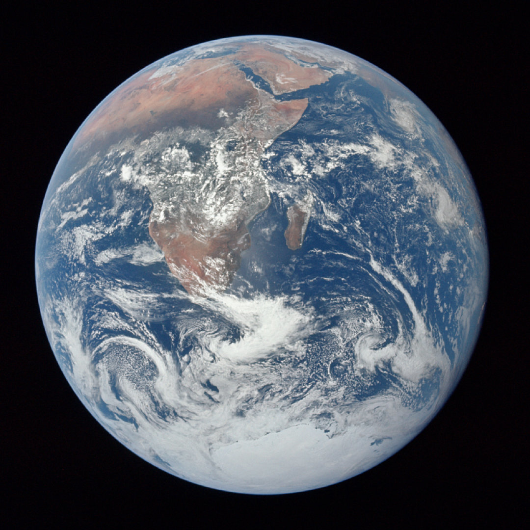 紧随其后的是 1972年12月7日,阿波罗17号机组人员拍摄的另一张标志性照片。众所周知,“蓝色大理石”照片是第一张展示南极冰盖的照片,也是有史以来传播最广泛的照片之一。