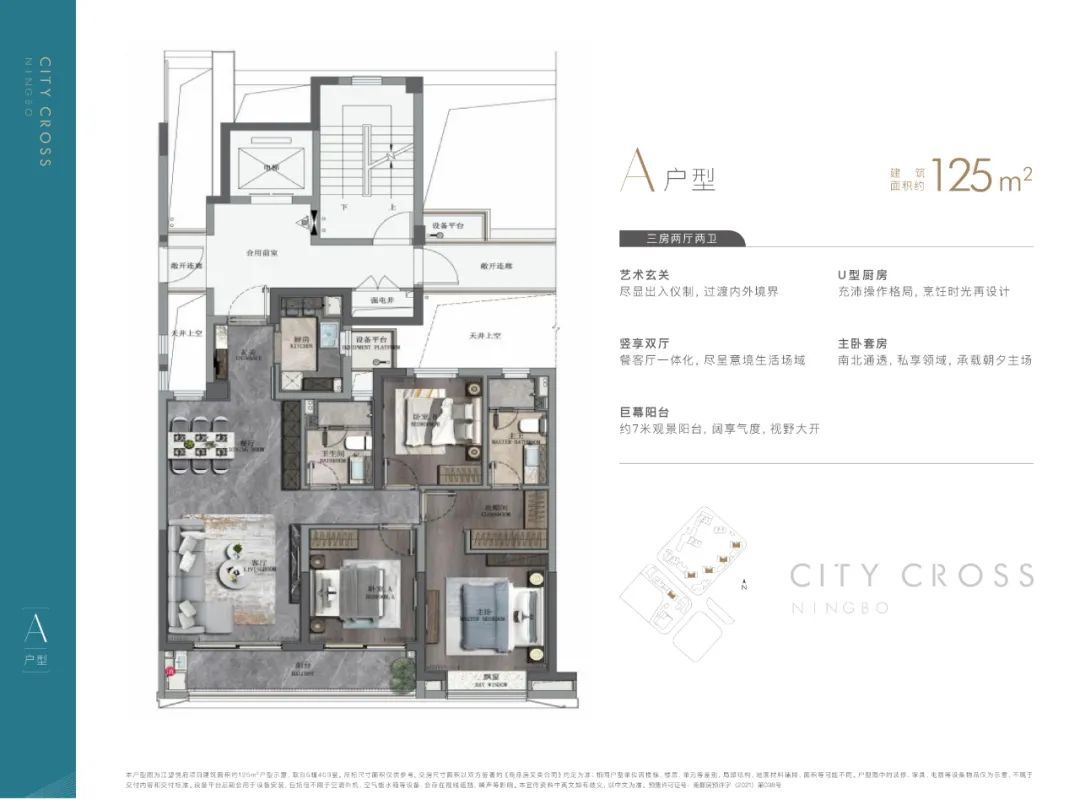 让人惊喜的是,在这个几乎绝版的临江奢邸中,还有建面约125㎡的户型。