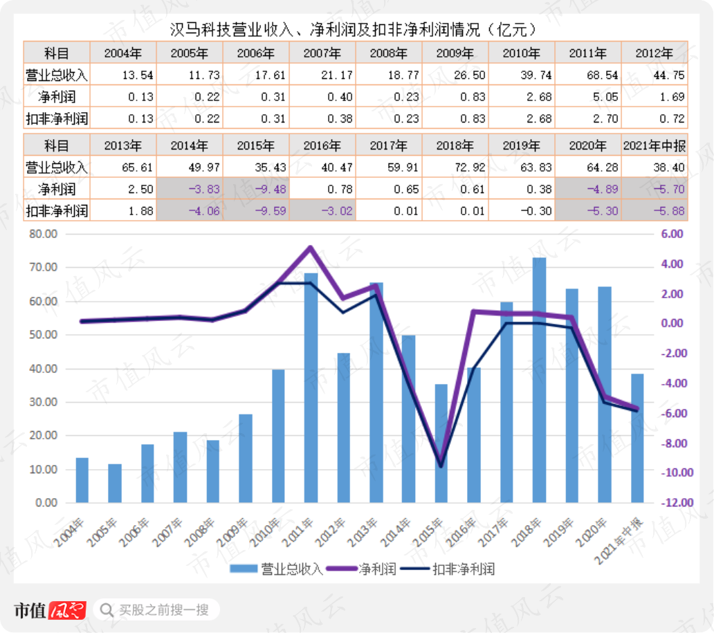 汉马科技上市17年,虽然一直都活得比较惨,但是矮子里面拔高子,我们还是勉强可以以2014年为分水岭:之前是勉强过活,之后则是间歇性亏损。