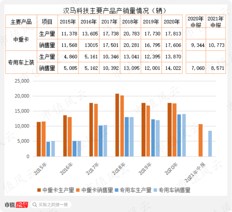 显然,汉马科技在2020年、2021年上半年均低于重卡行业平均增速。