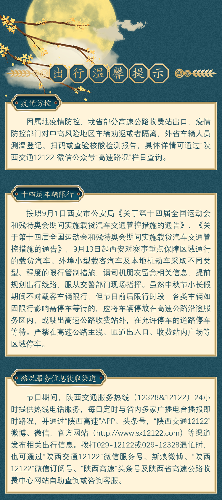 陕西发布了中秋假期出行提示