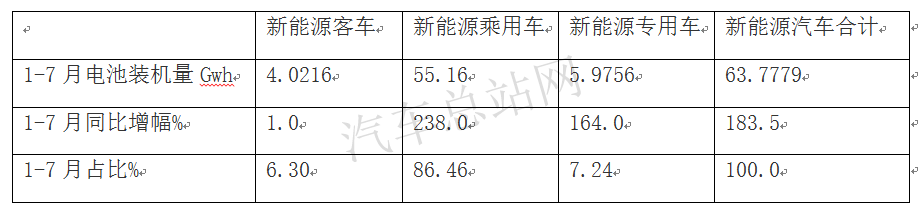 表2: 2021年1-7月我国新能源客车在新能源汽车市场中装机量同比及占比: