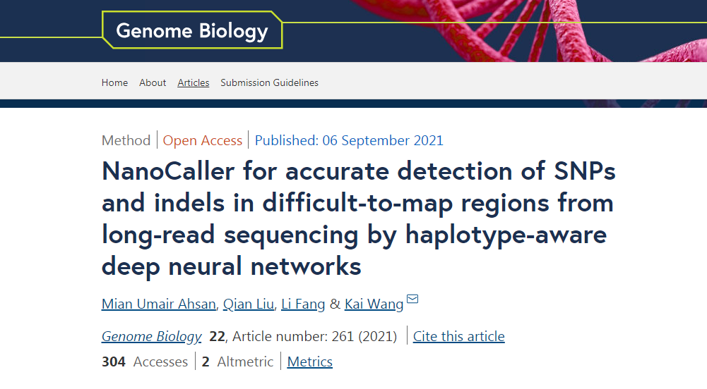 近日,费城儿童医院王凯教授团队开发了一种新的深度学习算法--NanoCaller,可充分利用长读长测序在基因组区域中检测变异,并在Genome Biology上发表了题为“NanoCaller for accurate detection of SNPs and indels in difficult-to-map regions from long-read sequencing by haplotype-aware deep neural networks”的研究文章。NanoCaller可利用单倍型信息检测SNP,使用称为SNP的长reads进行定相,并通过局部重新排列检测InDel。研究团队利用NanoCaller检测了一个被广泛使用的基准基因组中的41个全新变体,这是此前其他方法无法实现可靠检测,有助于从长读长测序中发现复杂基因组区域的新变体。