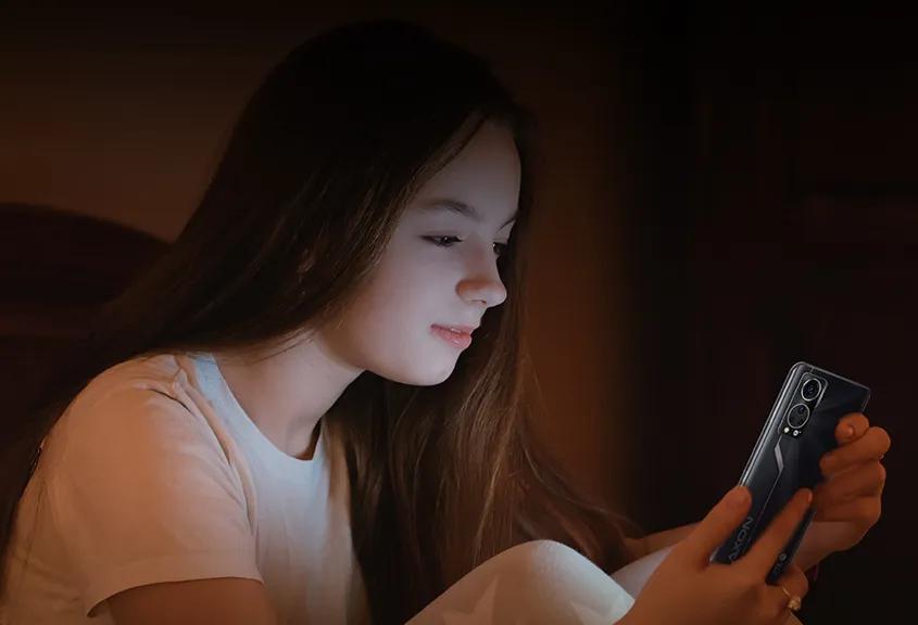 除了屏幕上的技术创新外,重点就是在于中兴还推出了贴心友好的护眼模式,Axon30 5G手机可以自动调节亮度,自适应调节蓝光,有效降低蓝光辐射,同时支持DC调光,降低屏幕闪烁,从根源上呵护双眼,缓解眼部疲劳,降低对面部皮肤的伤害,让用户可以轻松阅读学习,尽情享受电影和游戏的快乐。