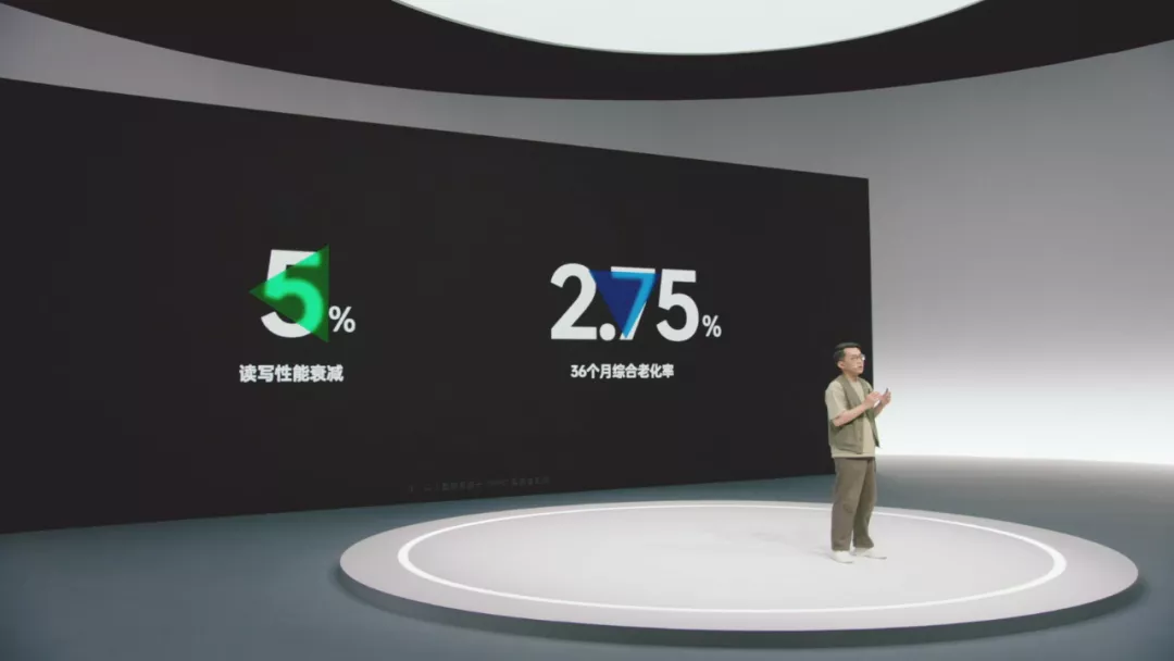 发布会给出的数据是,模拟手机持续使用 36 个月时,综合老化率只有 2.75%,依旧流畅。