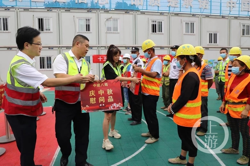 最后,大田湾体育场项目还慰问了一线工友代表,提前庆祝中秋佳节。