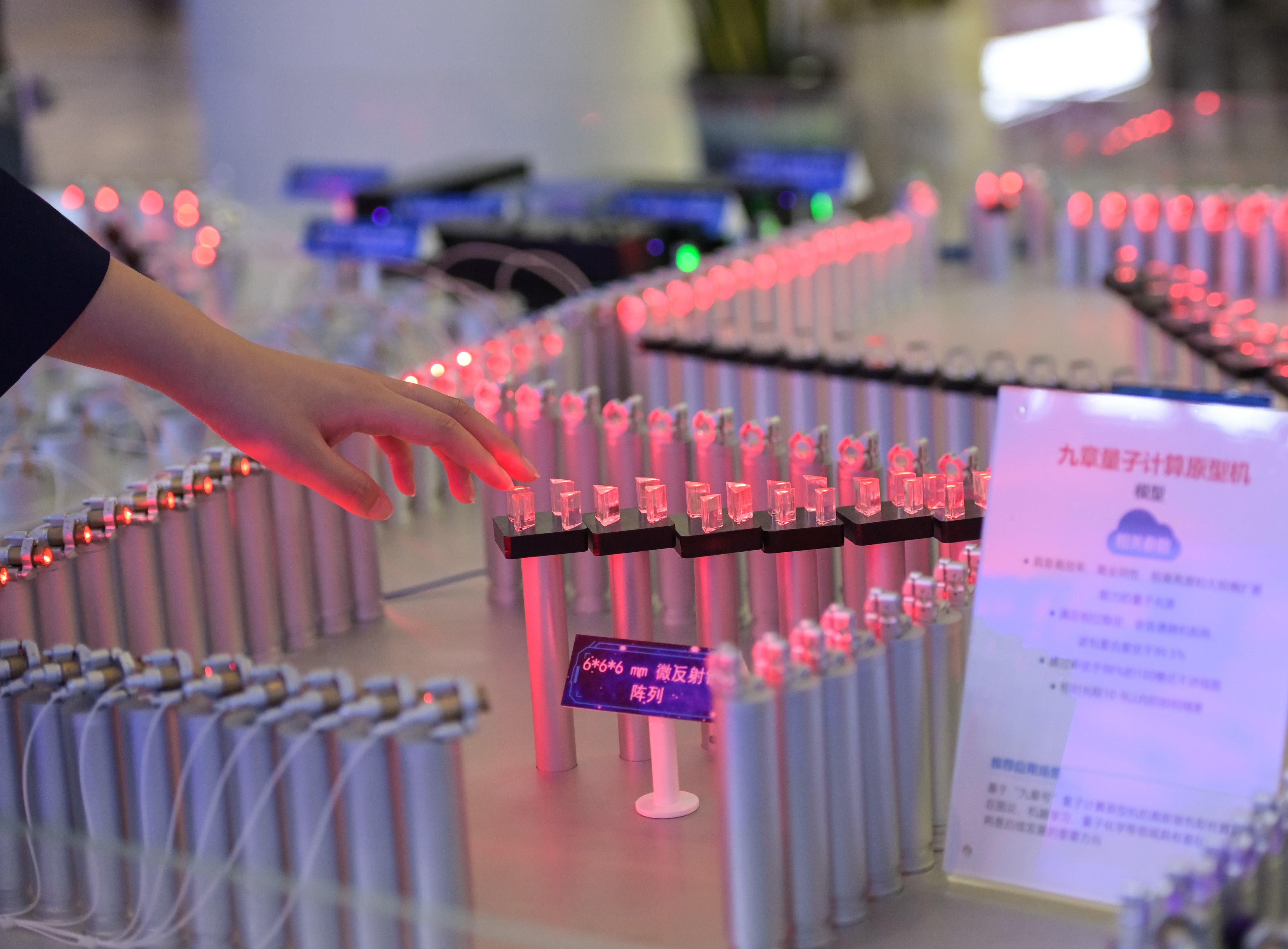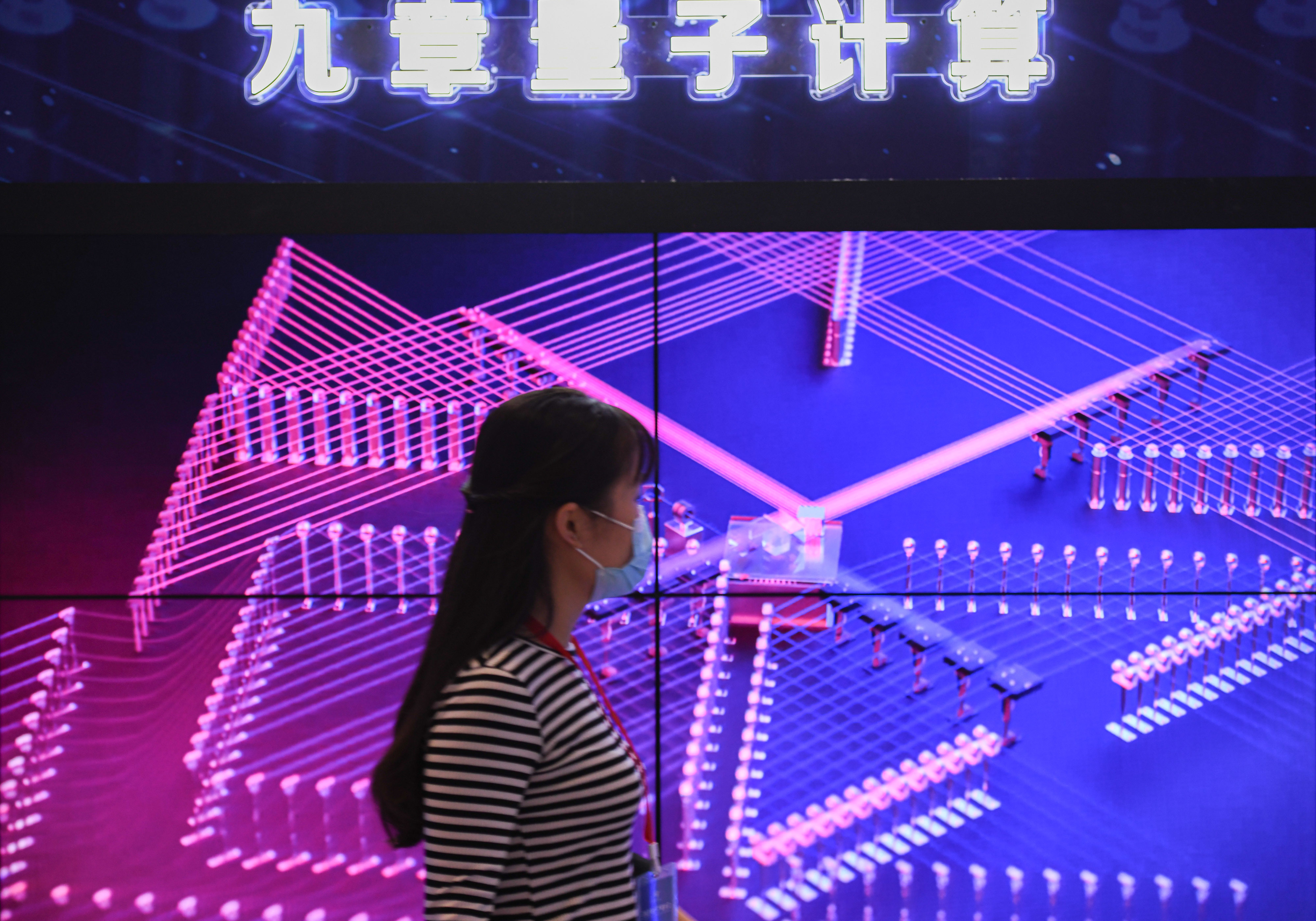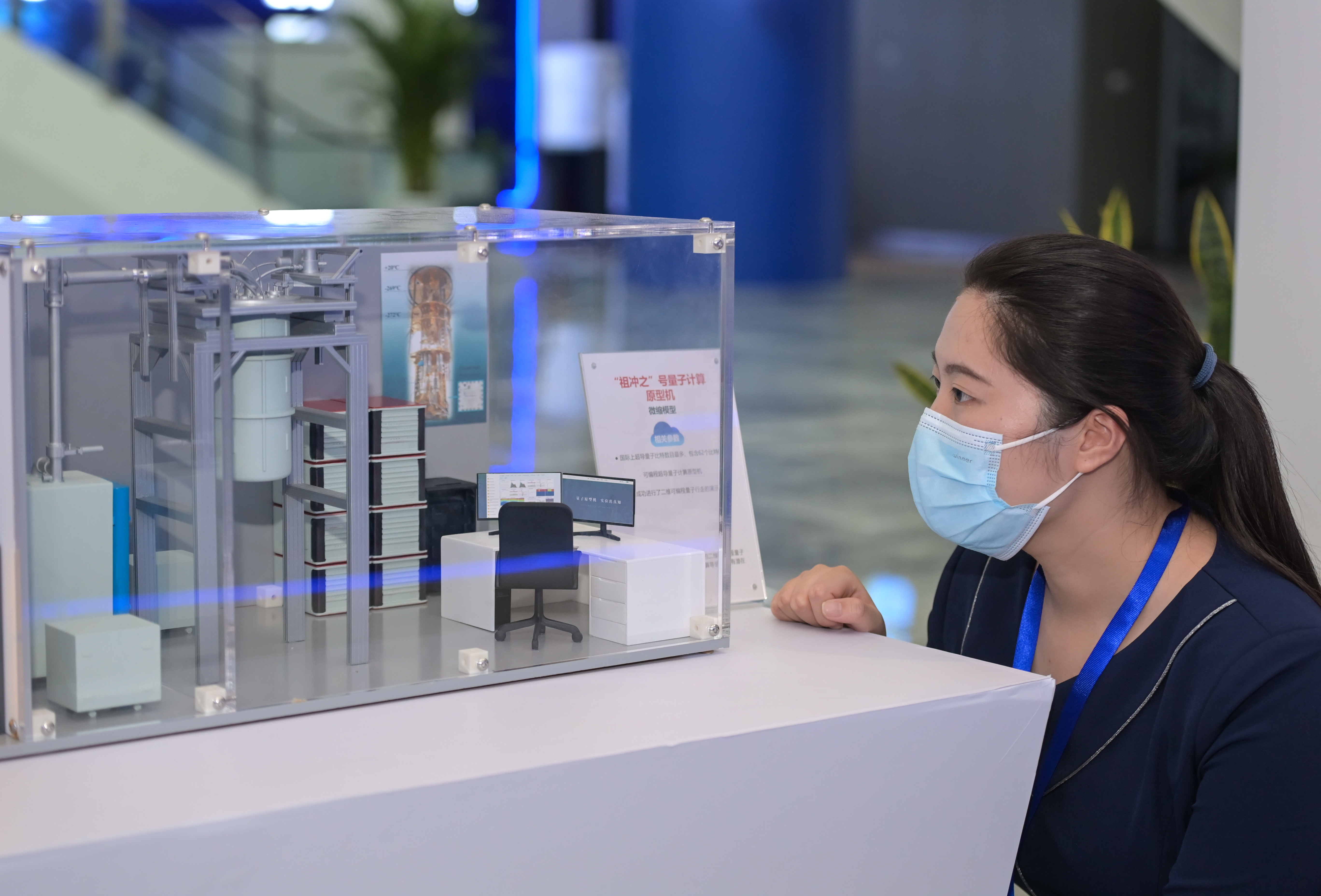 9月18日,参会人员在2021量子产业大会上参观“九章”量子计算原型机模型。新华社记者 杜宇 摄
