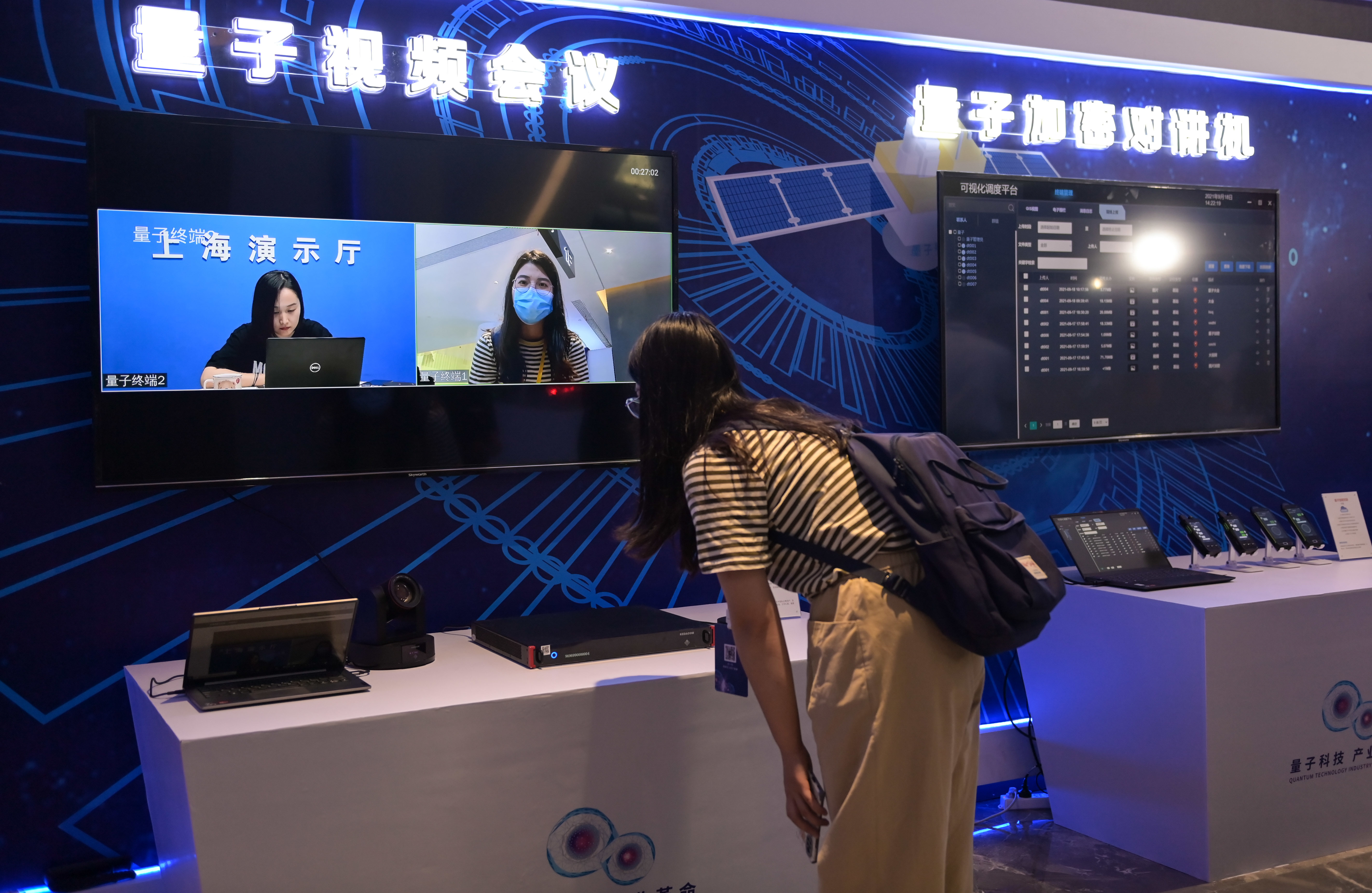 9月18日,参会人员在2021量子产业大会上体验量子视频会议。新华社记者 韩旭 摄