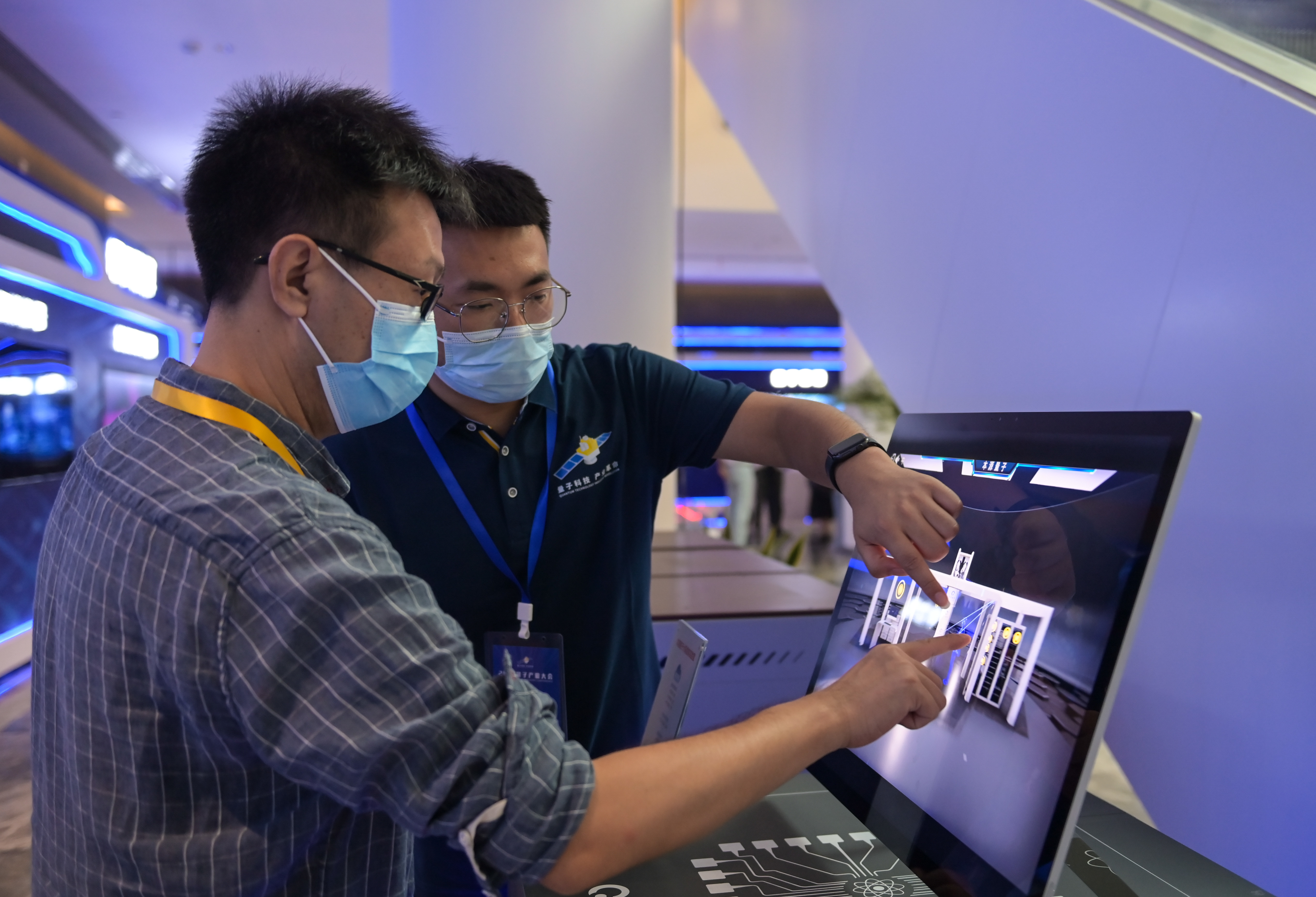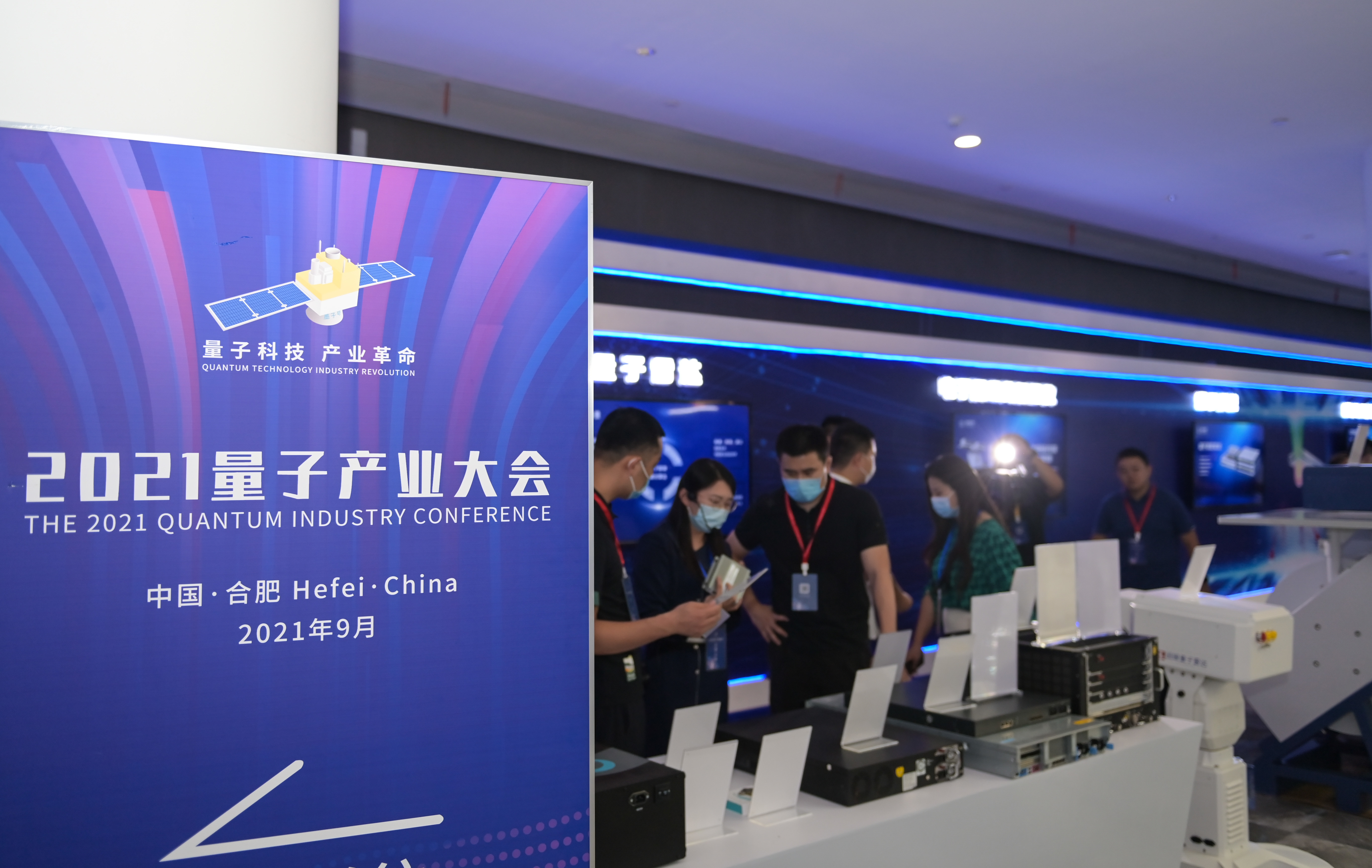 9月18日,参会人员在2021量子产业大会上参观。新华社记者 韩旭 摄