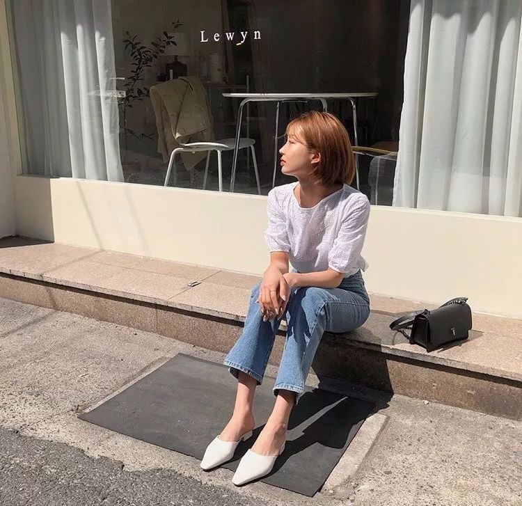 blouse+蓝色牛仔裤也是不错的选择,泡泡袖少女心十足,还能遮住手臂上的拜拜肉,满满的轻熟风。