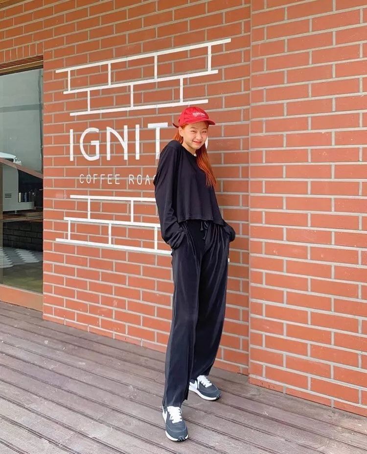一身黑的组合透露着满满的高级感。