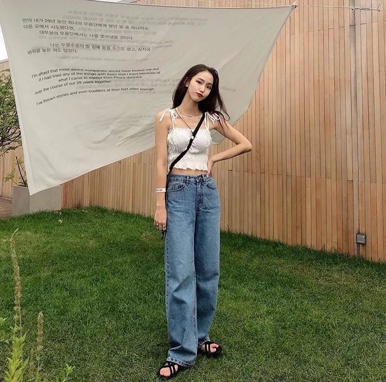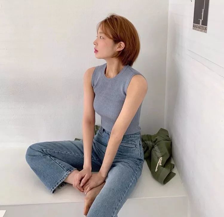 针织吊带背心,舒适透气还格外显胸,搭配牛仔裤,显得非常柔雅恬静。