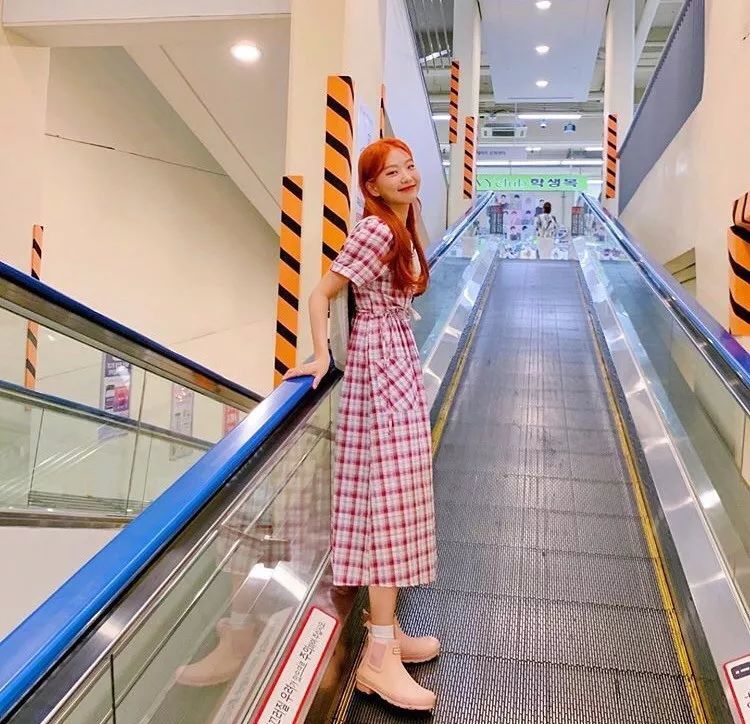 相比之下,格纹裙就显得优雅大气很多,收腰设计拉长了下半身的比例,显得整个人很是苗条,淑女又温婉。
