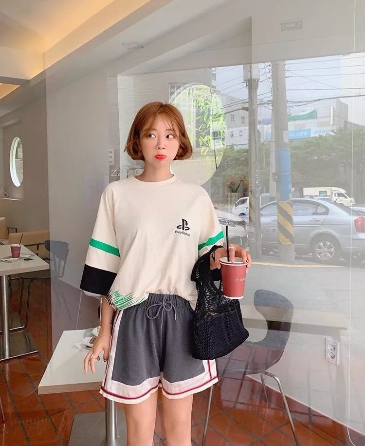 简单宽松的T恤+休闲短裤,舒适自由,尽情做自己。
